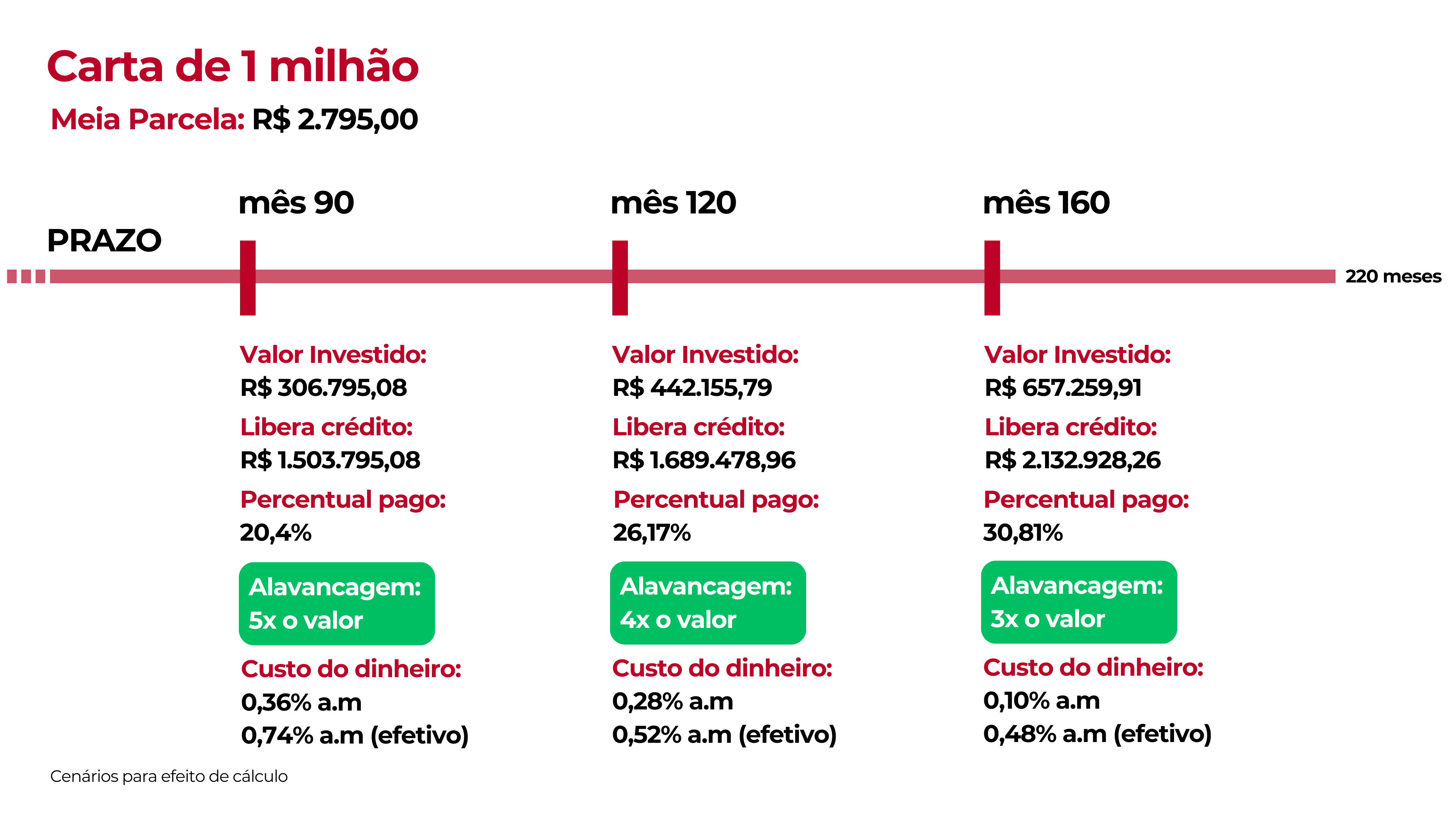 Abaixo você verá simulações de cenários de contemplação depois do mês 60.